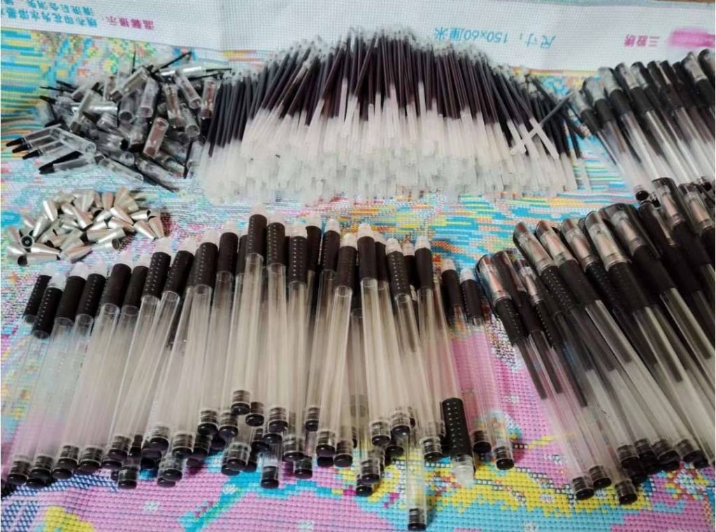 将笔杆、笔芯、笔帽、笔夹等零件按型号分类整理,确保各部件规格匹配,无变形、毛刺等瑕疵。